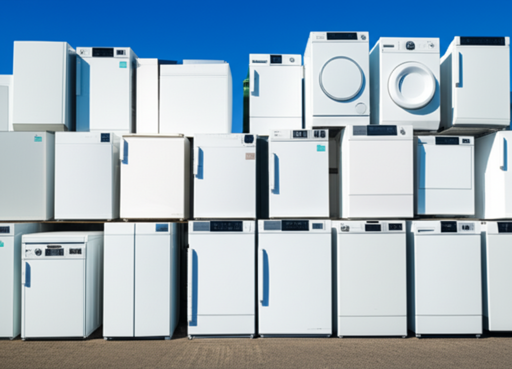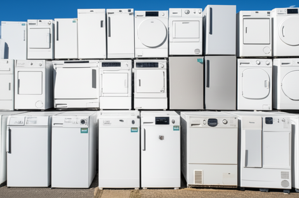 • | 품목 | 상세 품목 | 냉장고, 세탁기, 에어컨, TV (CRT, LCD, LED), 전기밥솥, 전자레인지, 오븐레인지, 가스레인지, 식기세척기, 김치냉장고, 제습기, 정수기, 공기청정기, 비데, 가습기, 선풍기, 청소기, 오디오, 컴퓨터 (본체, 모니터), 노트북, 프린터, 복사기, 팩스, 휴대폰, 전기장판, 전기매트 |