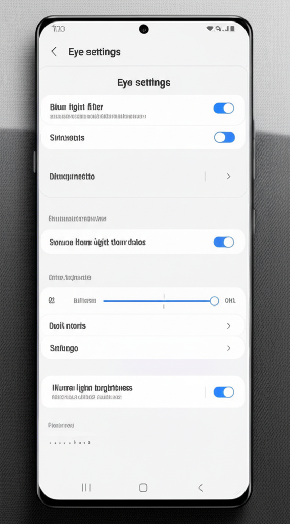 Q10: 위에 언급된 설정 외에 눈 건강을 위해 할 수 있는 다른 방법은 없나요? A10: 스마트폰 사용 시간을 줄이고, 정기적으로 안과 검진을 받는 것이 눈 건강을 위해 중요합니다.