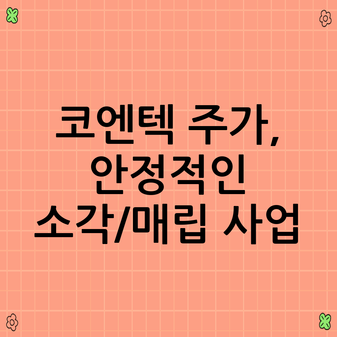 코엔텍의 가장 큰 강점은 안정적인 사업 모델입니다. 폐기물 처리 사업은 경기 변동에 크게 영향을 받지 않는 필수적인 산업이며, 정부의 환경 규제 강화 추세에 따라 지속적인 성장이 기대됩니다. 코엔텍은 다음과 같은 요인들을 통해 안정적인 수익을 창출하고 있습니다.