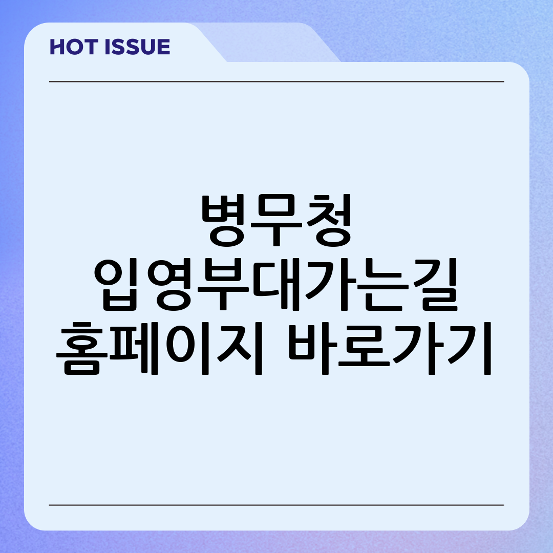 병무청 입영부대 가는 길 홈페이지 바로가기를 통해 편리하게 입영 정보를 확인하고, 입영 준비에 만전을 기하시기 바랍니다.